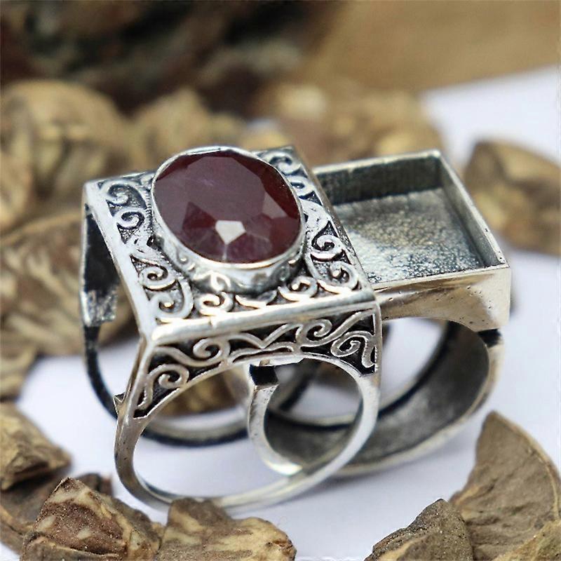Dazzling Vintage Silver Color Round Men Rings Set Fashion Red Stones Party Bridal Ring Jewelry