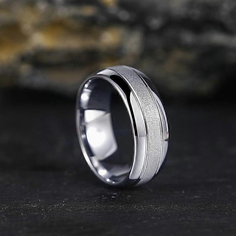 Tigrade 8mm Tungsten Carbide Rings For Men 24K Gold Plated Polished Edge Sandblasted Domed Wedding Ring Engagement Band Jewelry