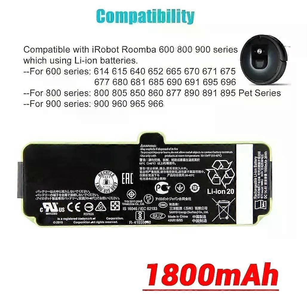 unique For IRobot Roomba 14.4V 1800/6500mAh Battery Roomba 600 700 800 900 Series Vacuum Cleaner IRobot Roomba 655 780 805 890 960 Part