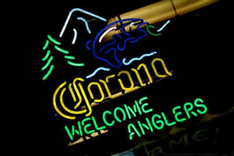 Welcome Anglers Tropical Fishing Lodge Handmade Neon Sign - 24"x20" Real Glass Vacation Vibes Wall Hanging Nightlight
