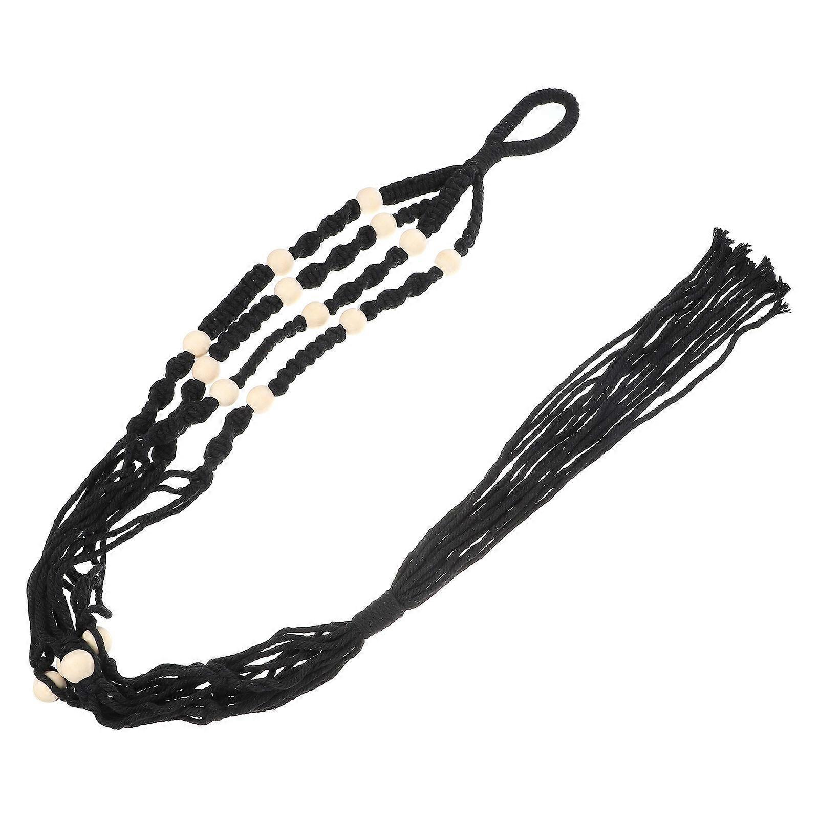 Macrame Plant Hanger for Indoor Decoration in Black Cotton Modern Bohemian Wall Hanging 27.5 Inches