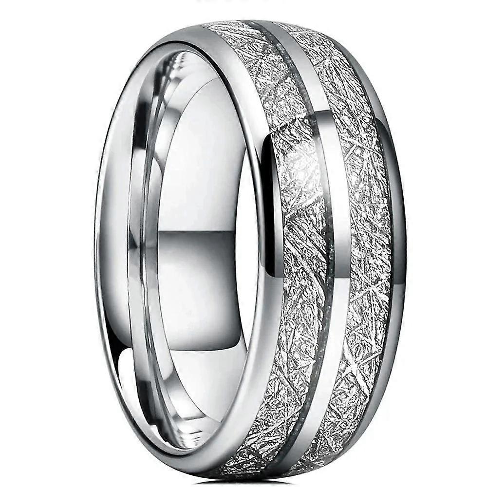 Fashion 8mm Silver Color Stainless Steel Rings for Men Double Groove Meteorite Inlay Dome Men Finger Ring Wedding Band Jewelry