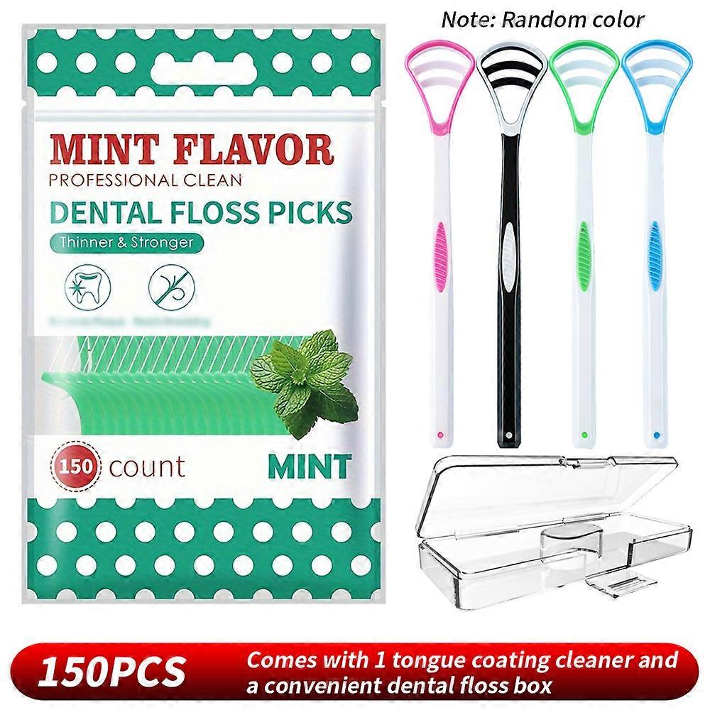 Mint Dental Floss Sticks 150-600PCS | Free Tongue Cleaner + Portable Case - Teeth Interdental Cleaning Tools