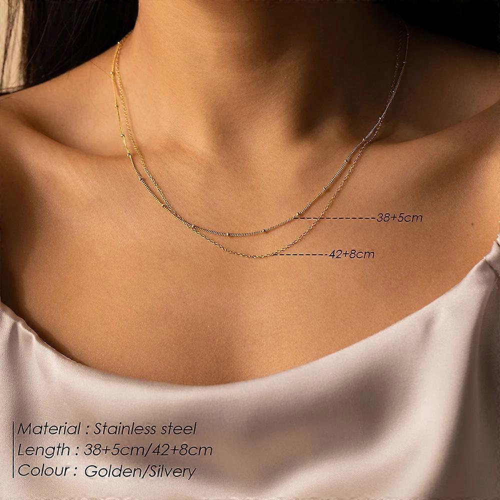 eManco Classic Women's Necklace Multi Stacked Fine Chain Stainless Steel Gold Plated Necklaces Fashion Jewelry Gifts
