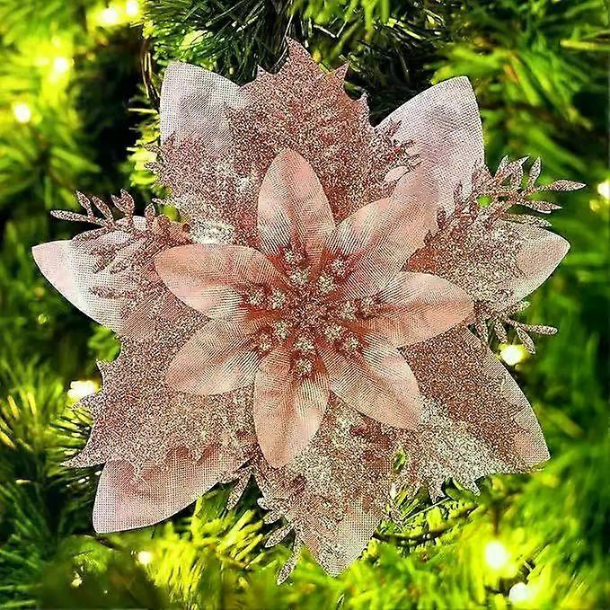 1-20Pcs Glitter Artificial Christmas Fake Flowers Merry Xmas Tree Decor Happy New Year Natal Ornaments Festive Home Decor
