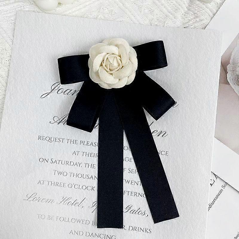 New Black Bowtie Ribbon Bow Brooch Fabric Camellia Flower Brooch Pins Vintage Wedding Party Brooches For Women Accessories
