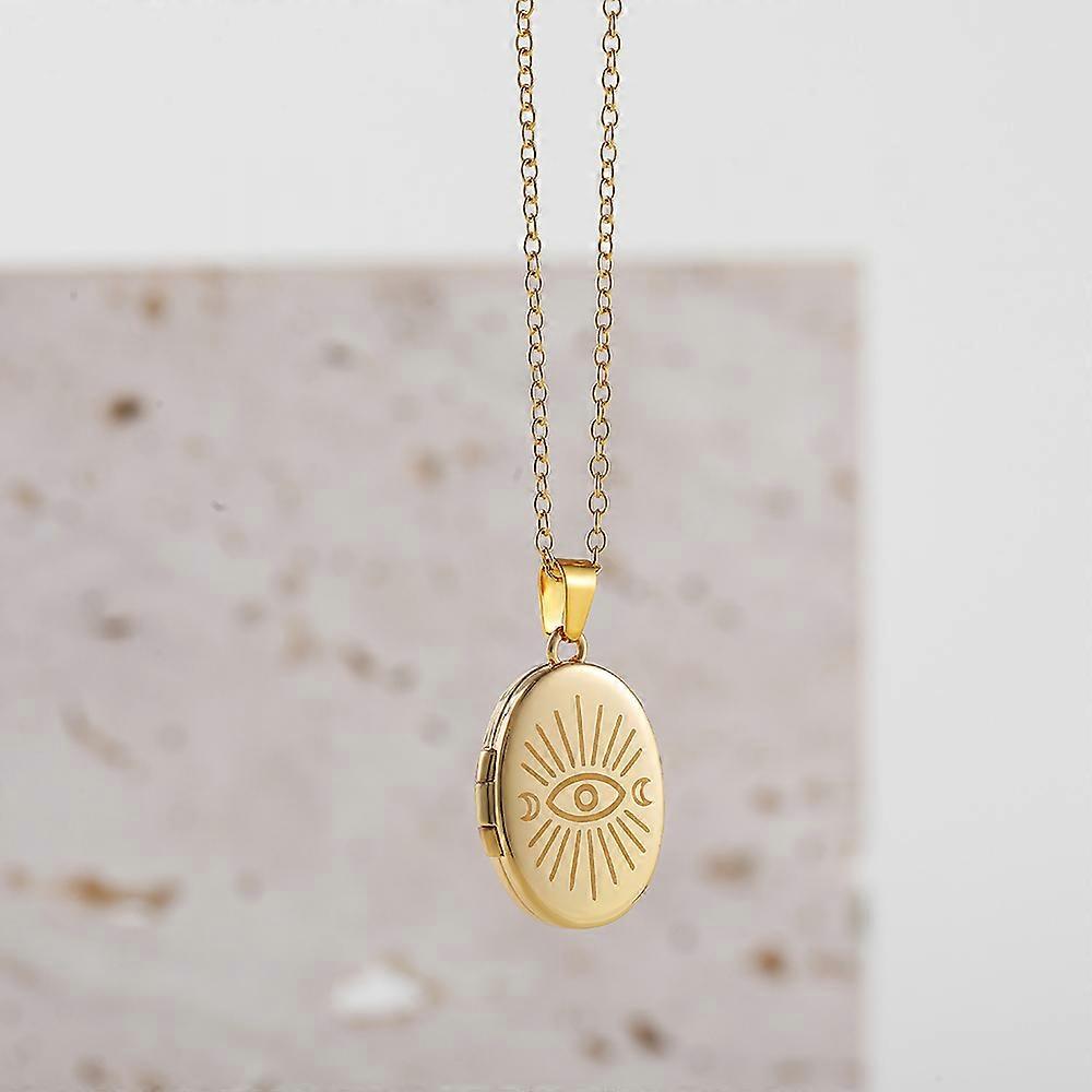 Vintage Moon Sun Evil Eyes Oval Photo Frame Locket Necklace for Women Stainless Steel Choker Necklaces Collar Jewelry Mom Gift