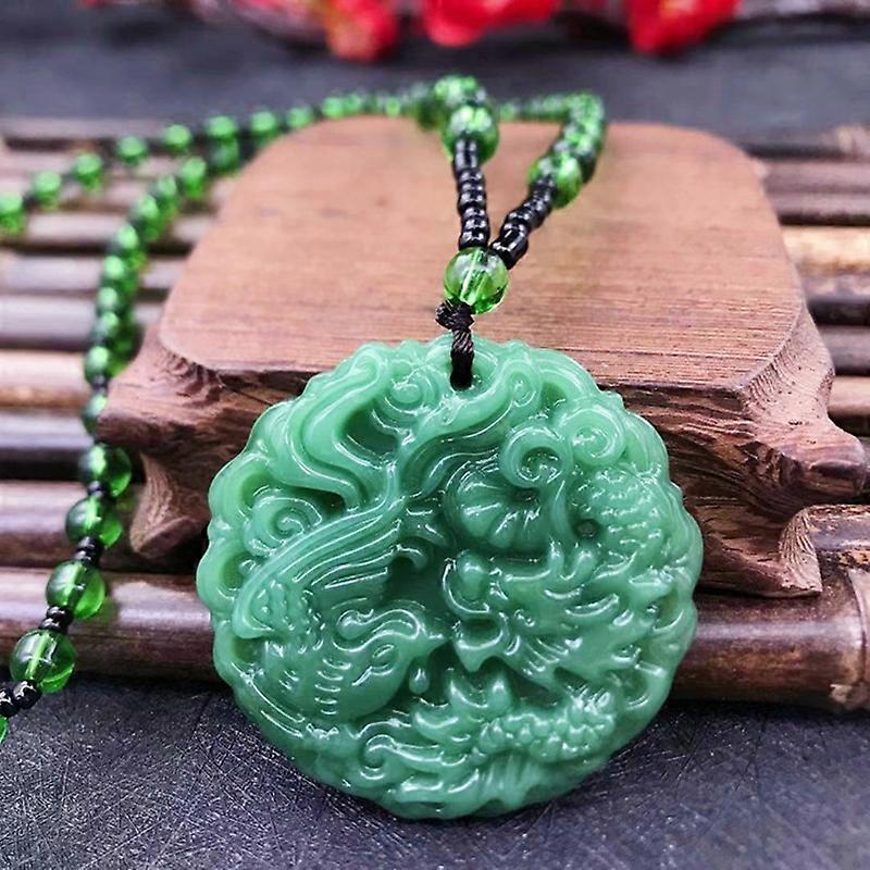 Fashion Chinese Ethnic Style Glass Hand-Carved Dragon Pendant Necklace Amulet Women Man's Lucky Jewelry Gift