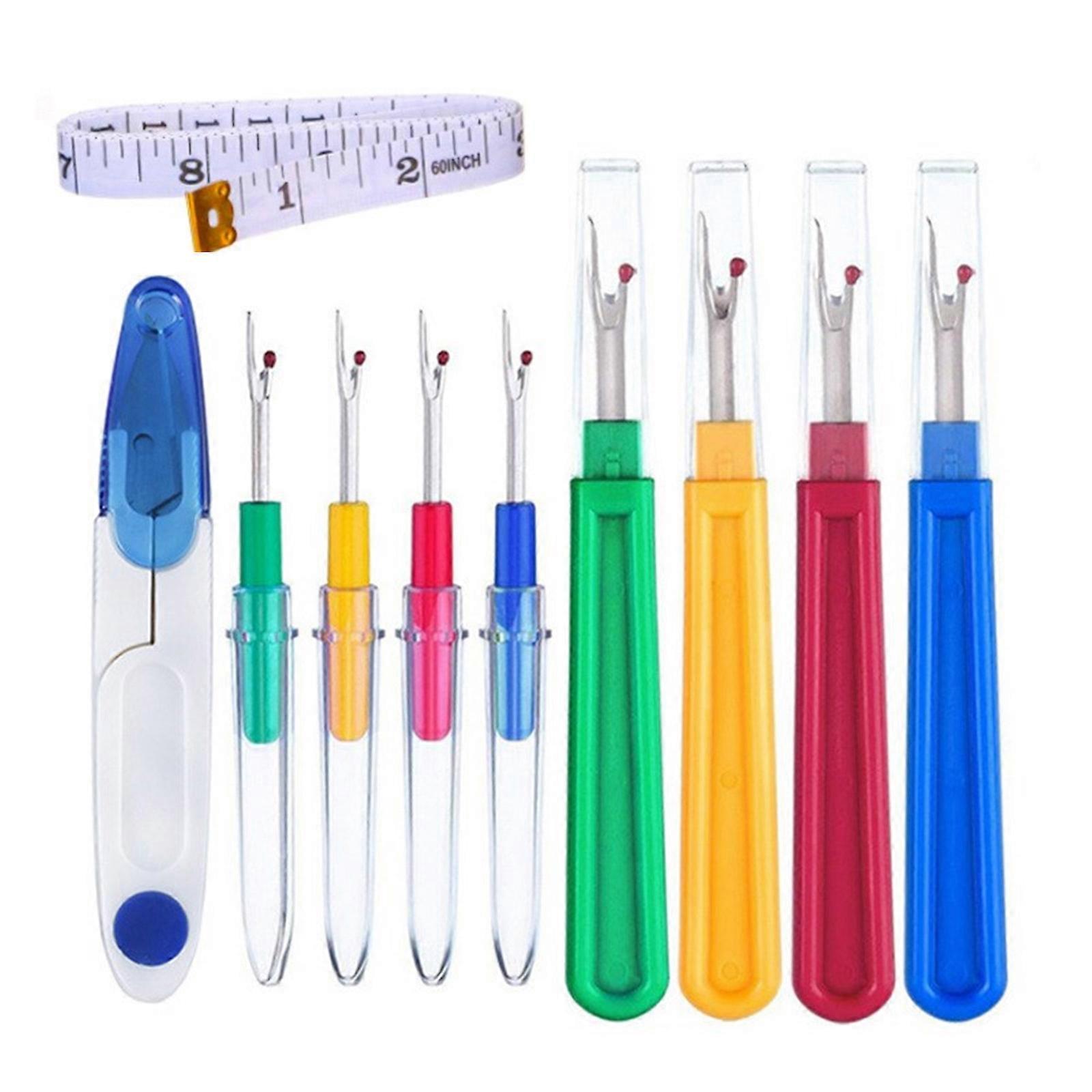 9/10Pcs Small Large Seam Rippers Scissors and Tape Measure Set, Thread Unpicker for Embroidery Quilting Removing Thread Multicolor