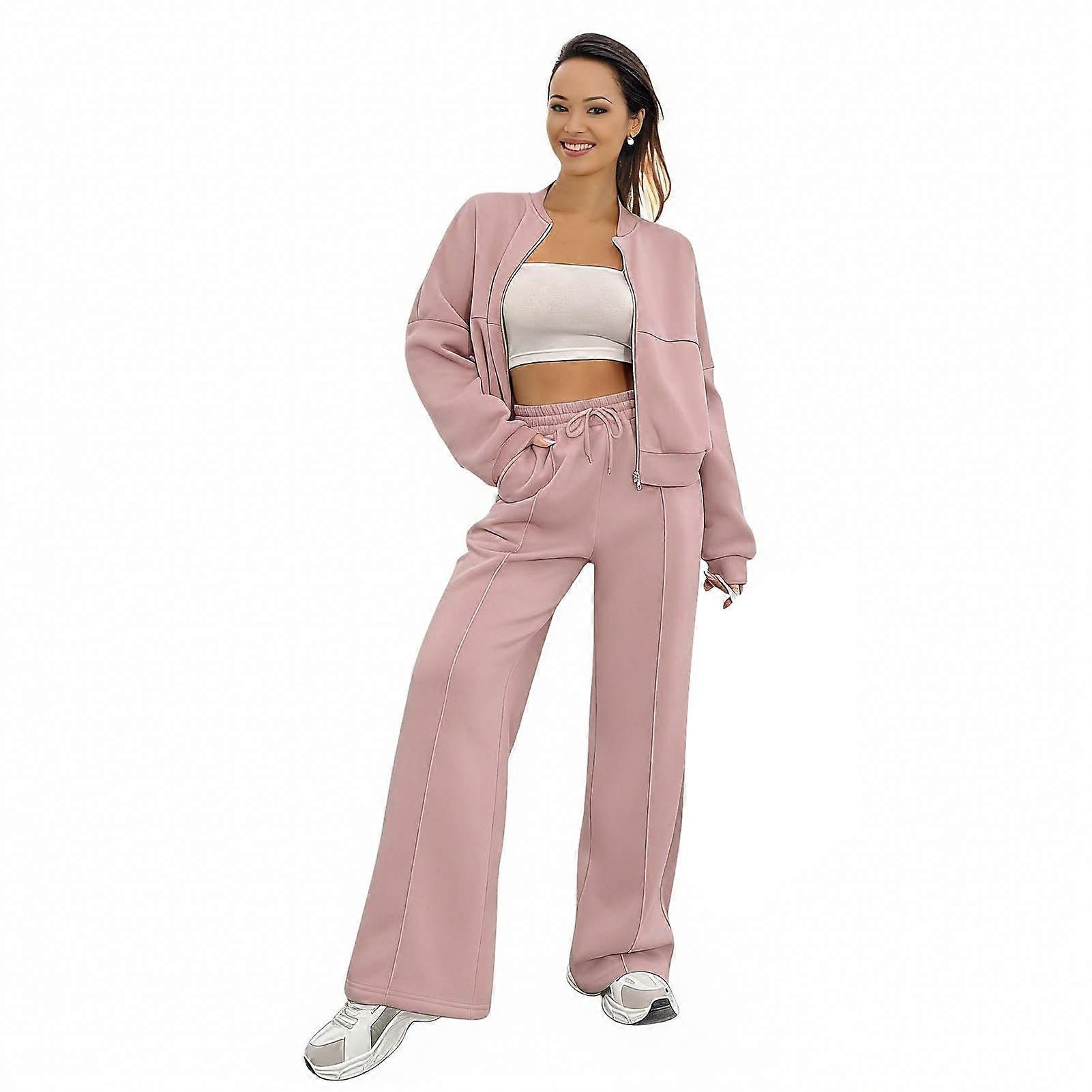 Women's 2-Piece Casual Tracksuit Set, Long Sleeve Zip-Up Sweatshirt & Wide-Leg Pants for Fall