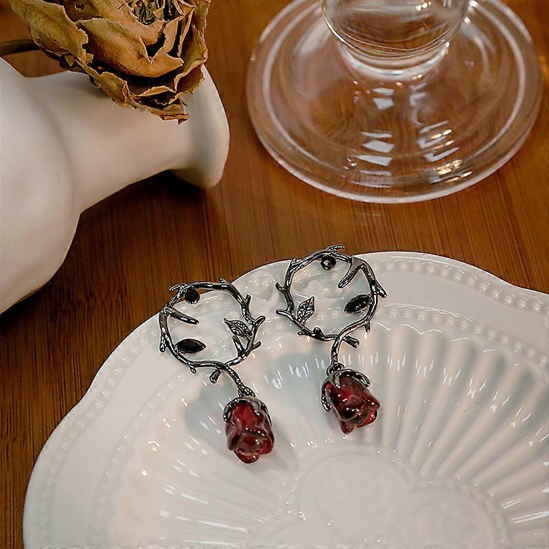 Double Layer Red Crystal Rose Pendant Necklace Layered Necklaces Thorn Rose Clavicle Chain Choker Earrings Goth Jewelry set Gift