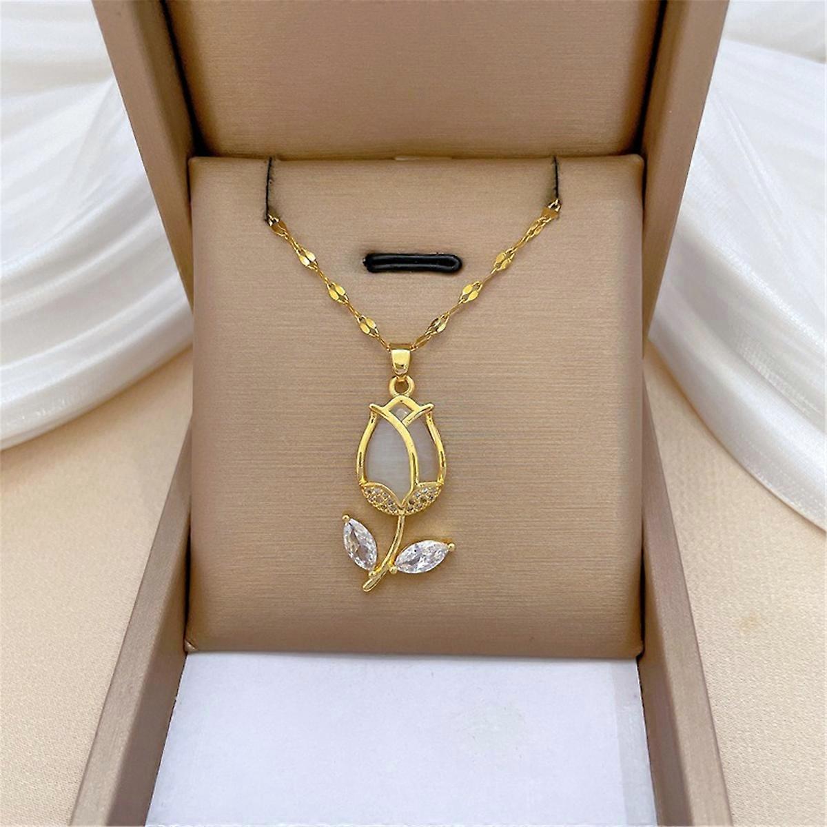Delicate Elegant Tulip Pendant Princess Necklace Copper Chains for Birthday, Anniversary, and Christmas Gift Jewelry for Women