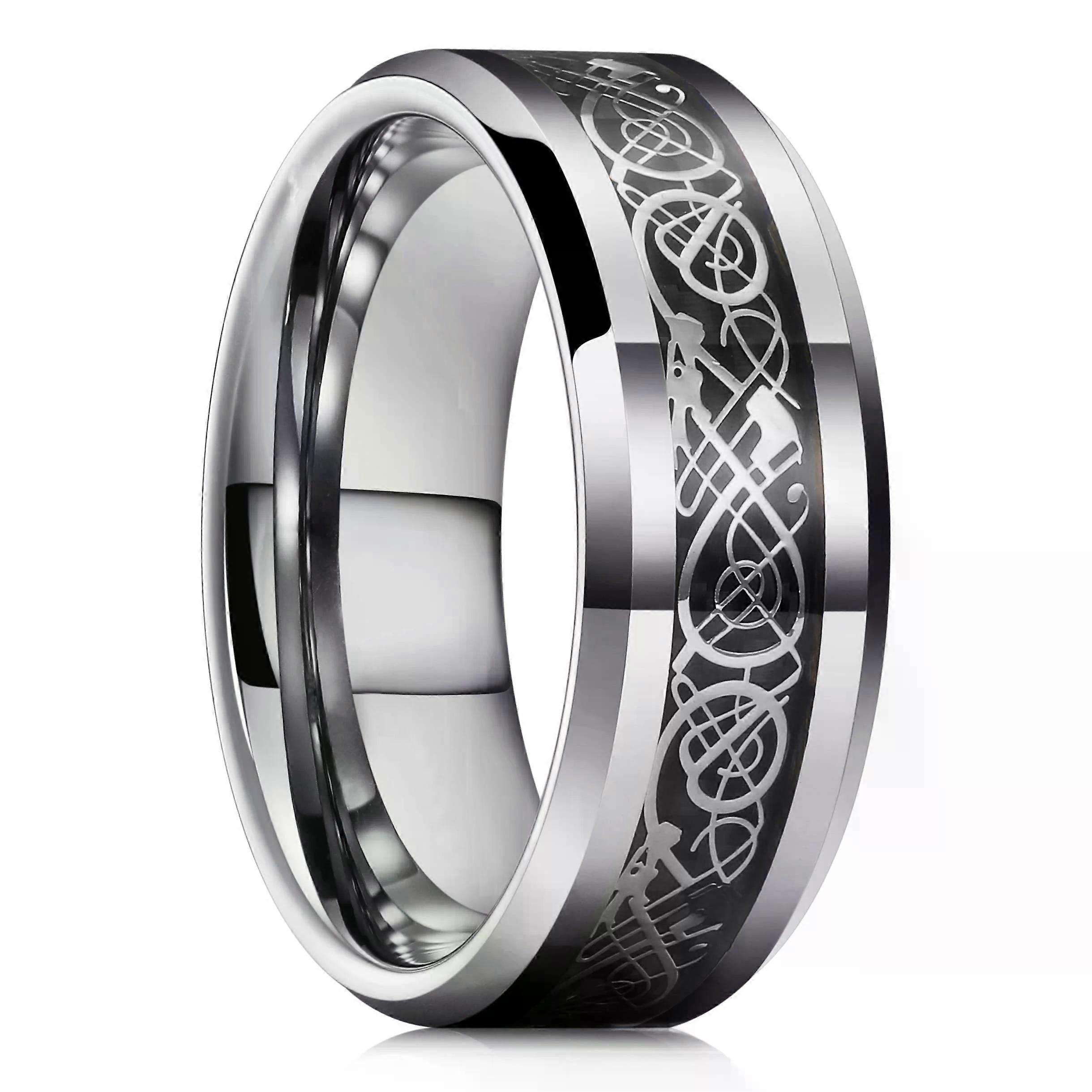 Vintage Silver Color Titanium Stainless Steel Rings for Men Black Carbon Fiber Ring Wedding Jewelry Christmas Gift Accessories