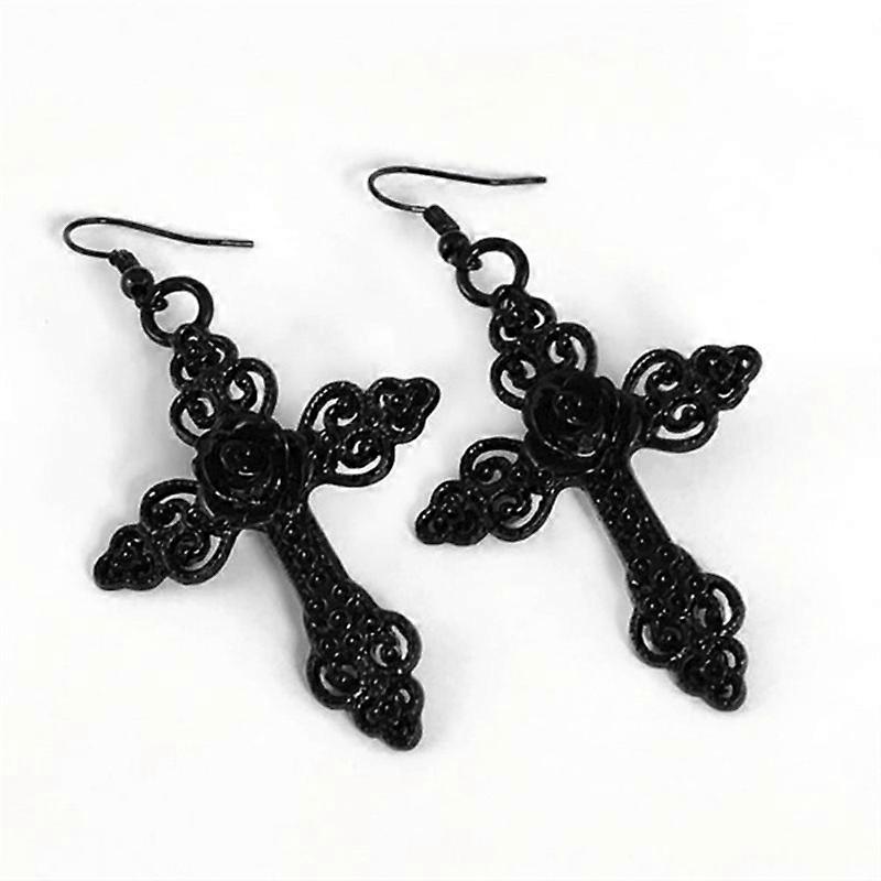 Black Gothic Cross Necklace with Rose Detail Trad Jewelry Ornate Cross Pendant Gift women fashion delicacy 2020 new beautiful