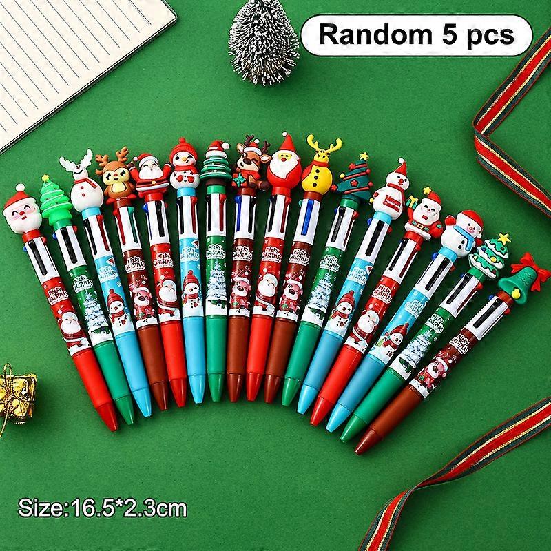 "Pack of 5 Xmas Mini 4 Hue Ballpoint Pen Lovely Santa & Reindeer 6 Color Pull Out Pen School Accessories
