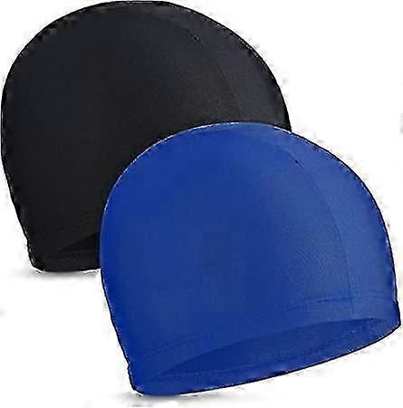 2-Pack Non-Slip Elastic Bath Caps for Men, Women, Kids - Lightweight, Comfortable, Quick-Dry Fabric in Black and Blue
