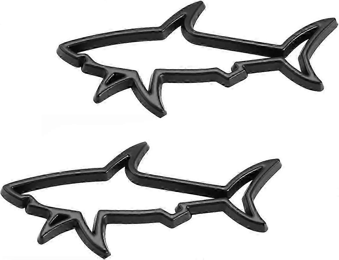 2-Pack Shark Design Door Emblem Stickers for Cars, Black Hollow Fish Badges Decals