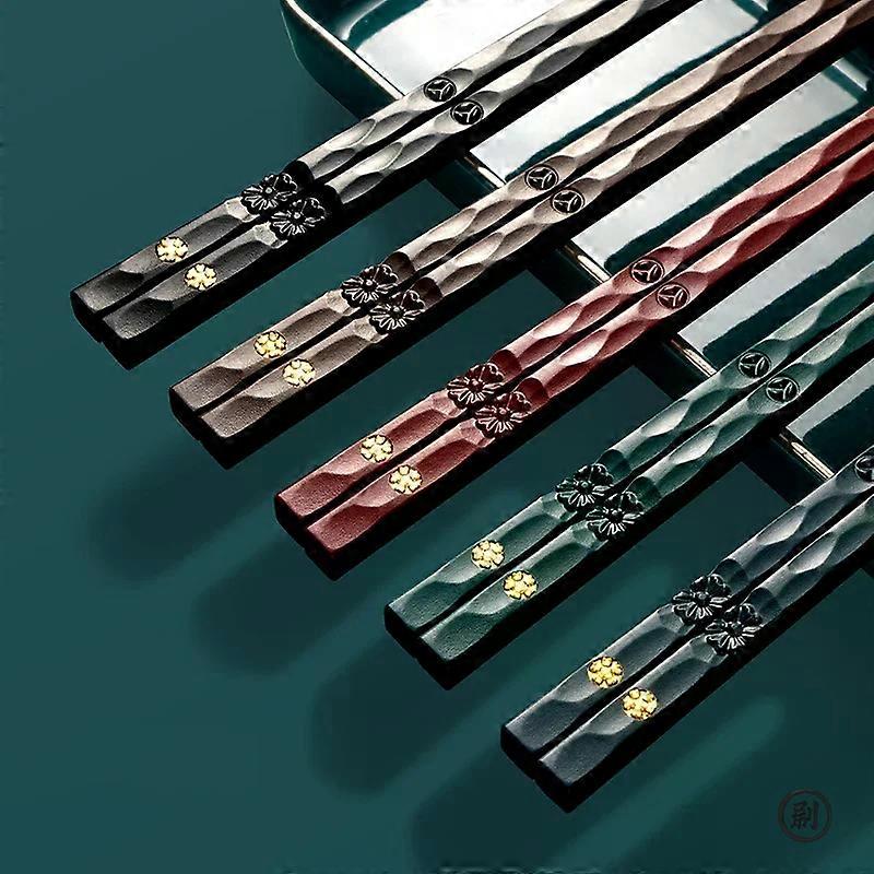5Pcs Reusable Chinese Chopsticks Food Sushi Sticks Alloy Non Slip Dishwasher Safe Bamboo Shape Food Grade Chopsticks