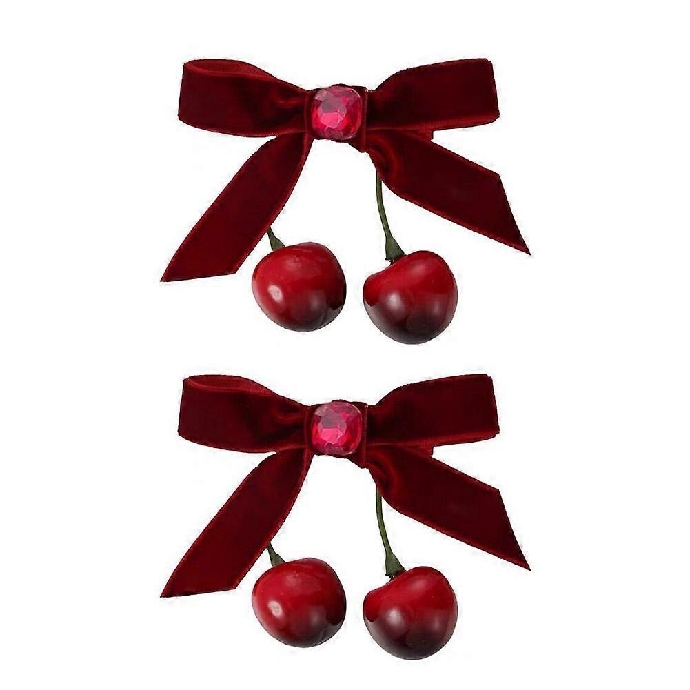 Velvet Bow Red Cherry Hairpins Barrettes Girls Bow Ties Hairbows Ornament Versatile Sweet Pastoral Hair Clip Hair Accessories