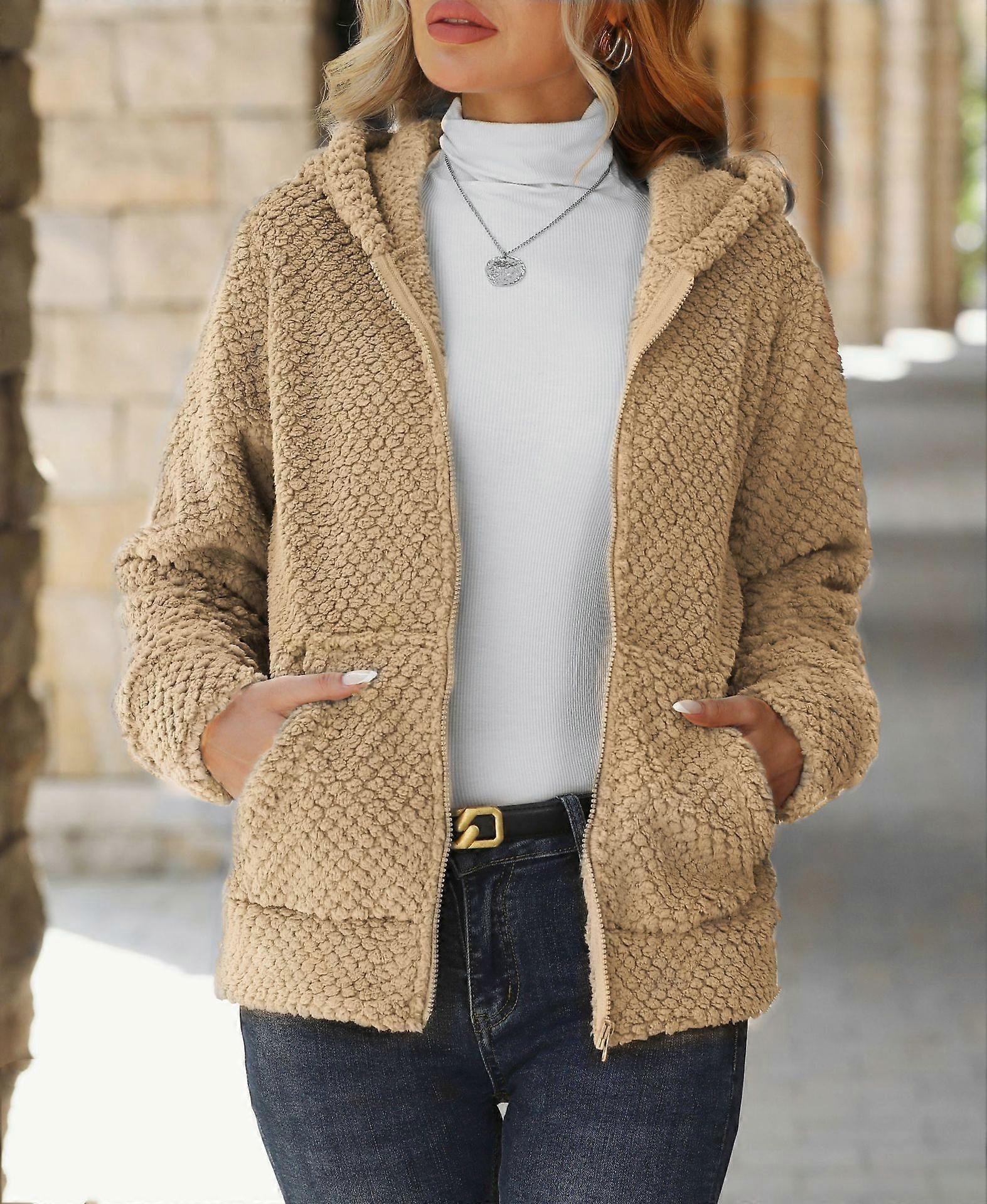 New Style Women's Loose Pocket Hooded Zipper Cardigan Women's Plush Coat
