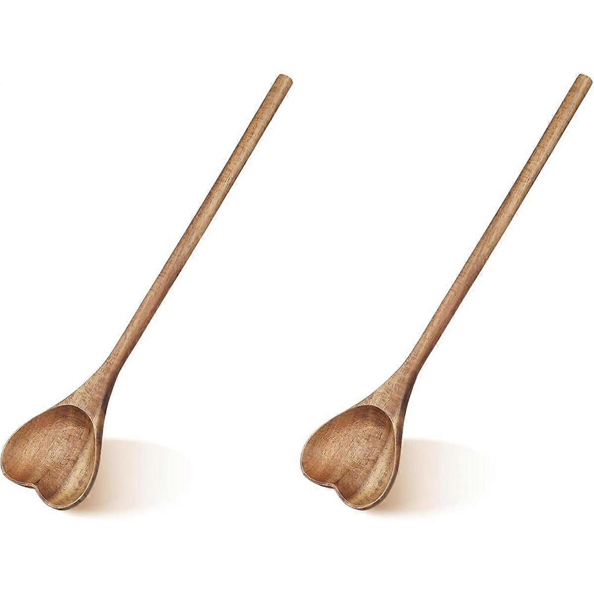 2pcs Heart Shaped Wood Spoon - Long Handle Love Spoon for Appetizer, Serving, Mixing - Kitchen Uten