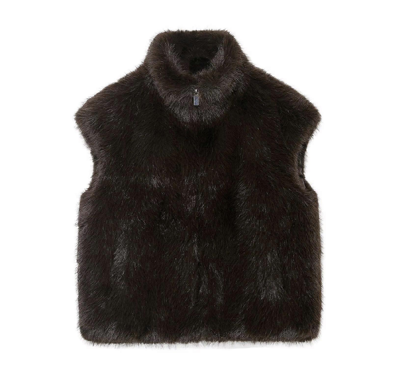 New Women's Clothing: Metal Zipper Decorative Stand Collar Sleeveless Faux Fur Vest Jacket