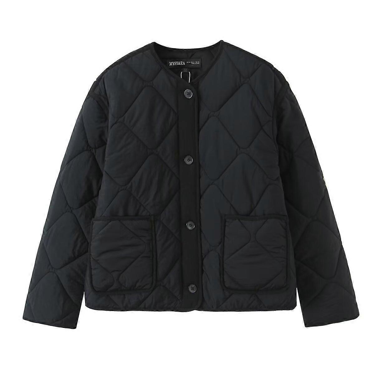 Women's Autumn And Winter New Loose Simple Casual Pocket-Embellished Round-Neck Plaid Cotton Jacket Coat