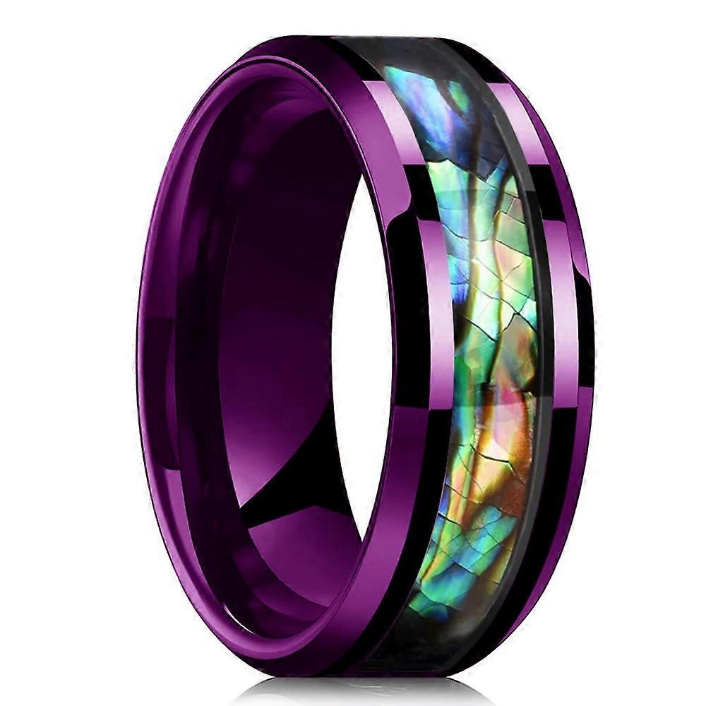 Fashion Purple Color Men Titanium Steel Rings Inlay Colorful Abalone Shell Stainless Steel Rings For Men Wedding Band Jewelry