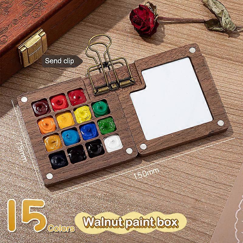 Mini Walnut Wood Watercolor Palette Portable Paint Box With Clip Travel Painting Paint Tray Art Supplies Sketchbook Palette