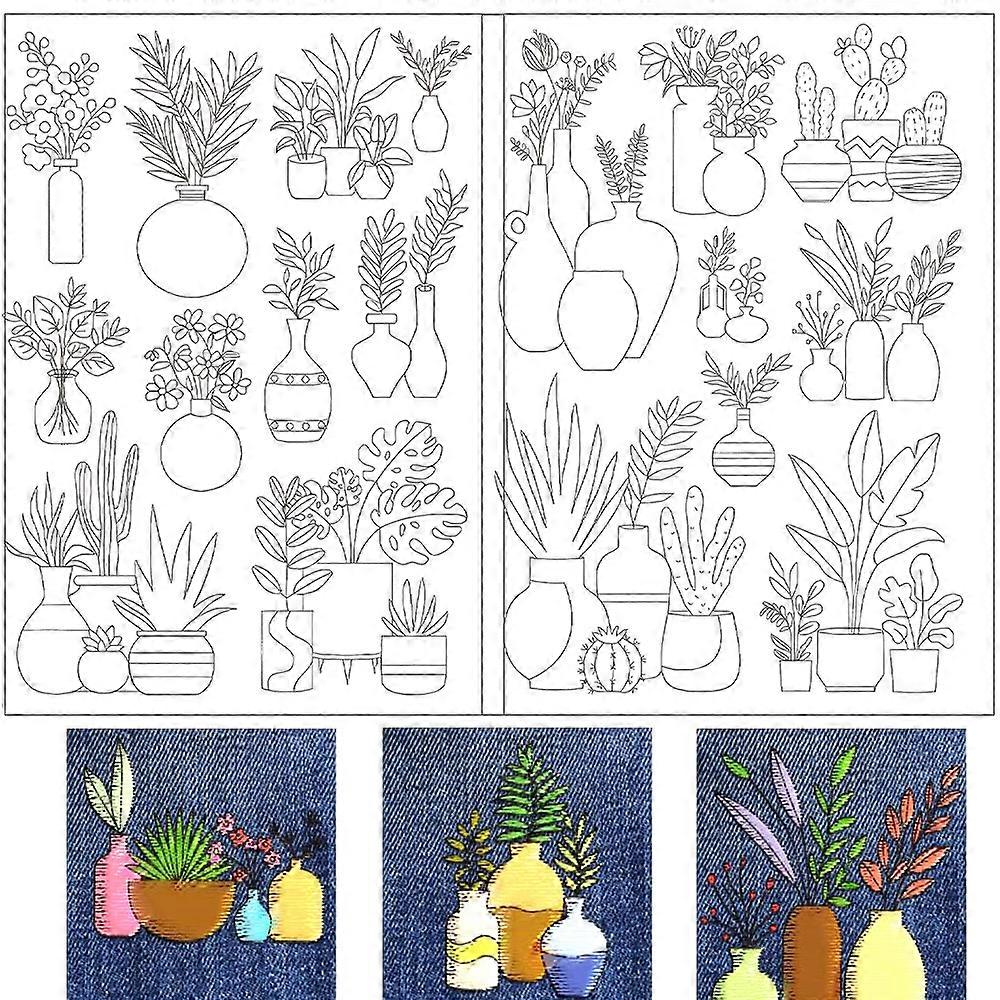 Flower Vase Water Soluble Stabilizer Embroidery Pattern,Self Adhesive Washable Stick and Stitch,Hand Sewing Stabilizers