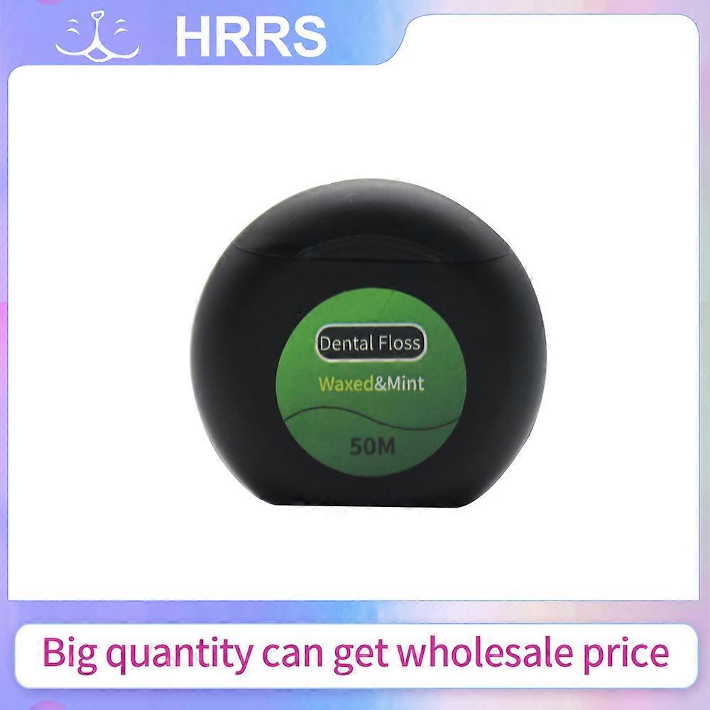 50m Bamboo Charcoal Dental Floss - Waxed Mint, Black Teeth Cleaner Flosser Pick