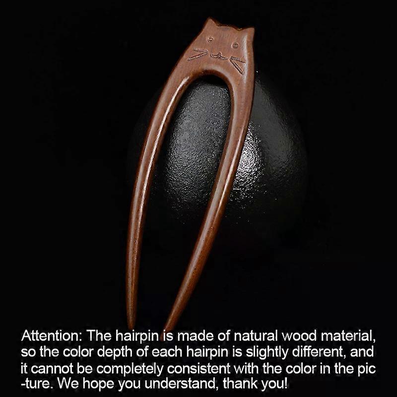 Chinese Cat Pattern Hair Sticks Wooden U Shaped Hair Forks for Women Girls Hanfu Hairpin Headwear Headpieces Hair Accessories