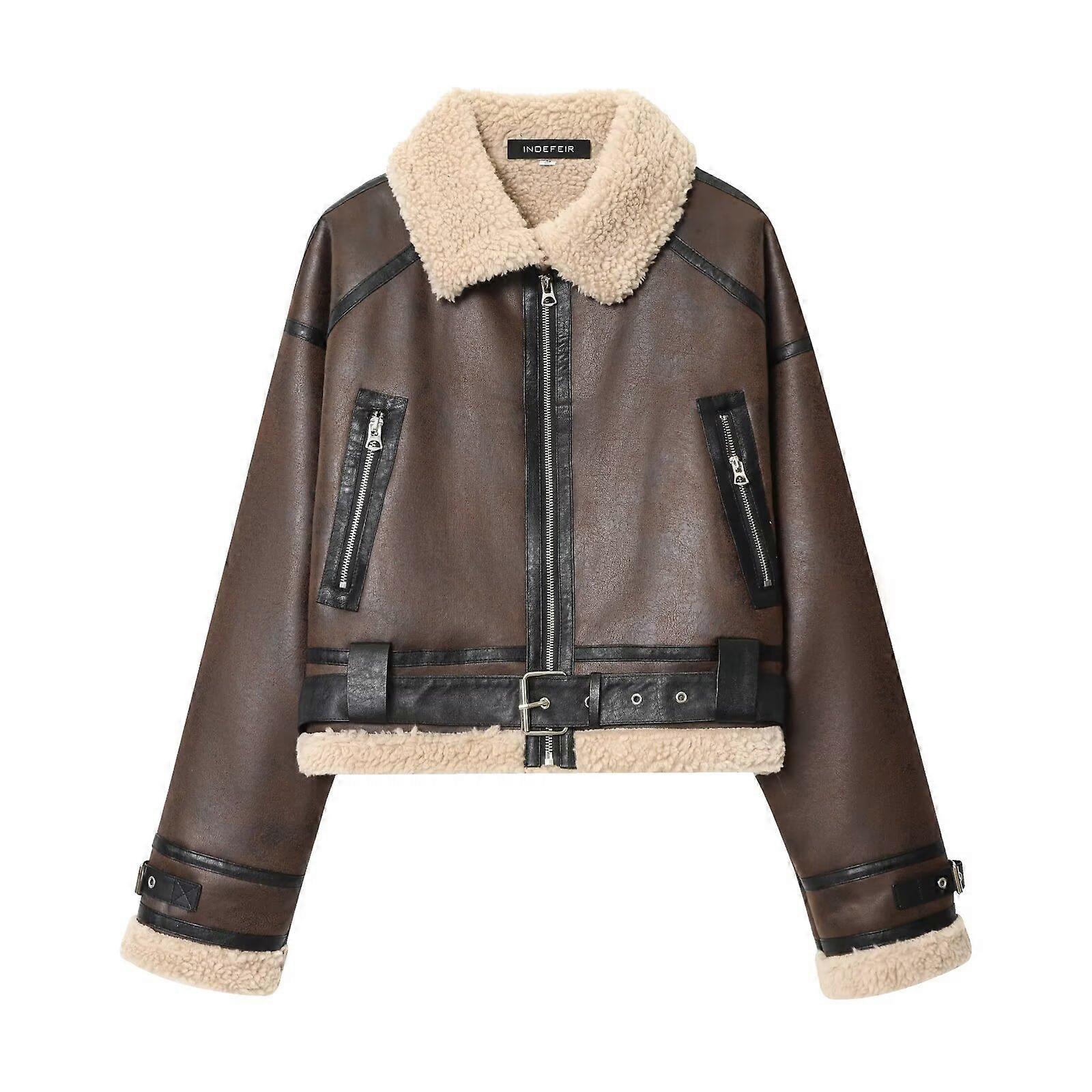 Women's Clothing Autumn And Winter New Double-Sided Short Versatile Fashion Lapel Long-Sleeve Spliced Jacket