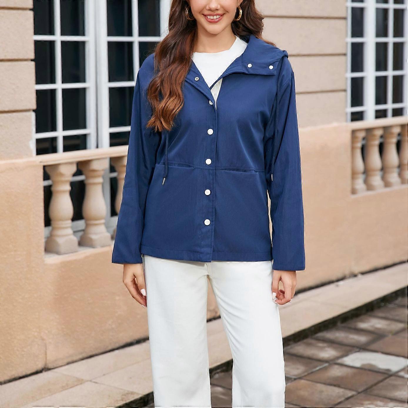 Retro Women's Clothing Color-Blocking Hooded Trench Coat, New Autumn And Winter Casual Wear Jacket