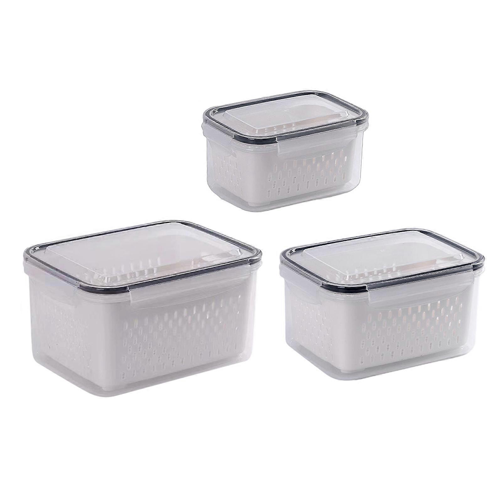 Features: Maximizes your fridges storage and keep your produce at freshness with our fruit container, featuring removable colanders for efficient draining and crispness. Designed with airtight and leakproof technology, these versatile container are dishwasher safe, ensuring easy maintenances and long lasted durability for all your food storage needs. Suit for busy homemakers,and meals prep enthusiasts seeking organized kitchen and prolonged freshness for fruits, vegetables, and meats. Transform your refrigerator into a neatly arranged havens, perfect for home kitchens, office pantries, or dorm living. Embraces a clutters frees fridge experience with our clear, stackable container that not only saves space but also allow you to quickly identify contents, making healthy snacking easily. Specifications: Component:Plastic Size:As picture shows Quantity:3Pcs/5Pcs Package Includes: 1 Set Food Storage Containers note: 1.Please allow 1-2cm errors due to manual measurement, making sure that you will not mind before order. 2.Due to the differences between different monitors, the picture may not reflect the actual color.