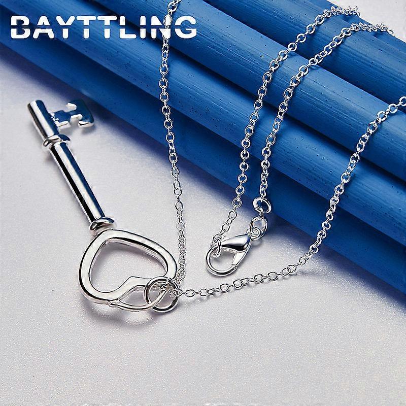 925 Sterling Silver 16-30 Inches Fine Heart Key Pendant Necklace For Women Men Fashion Wedding Engagement Jewelry Accessories