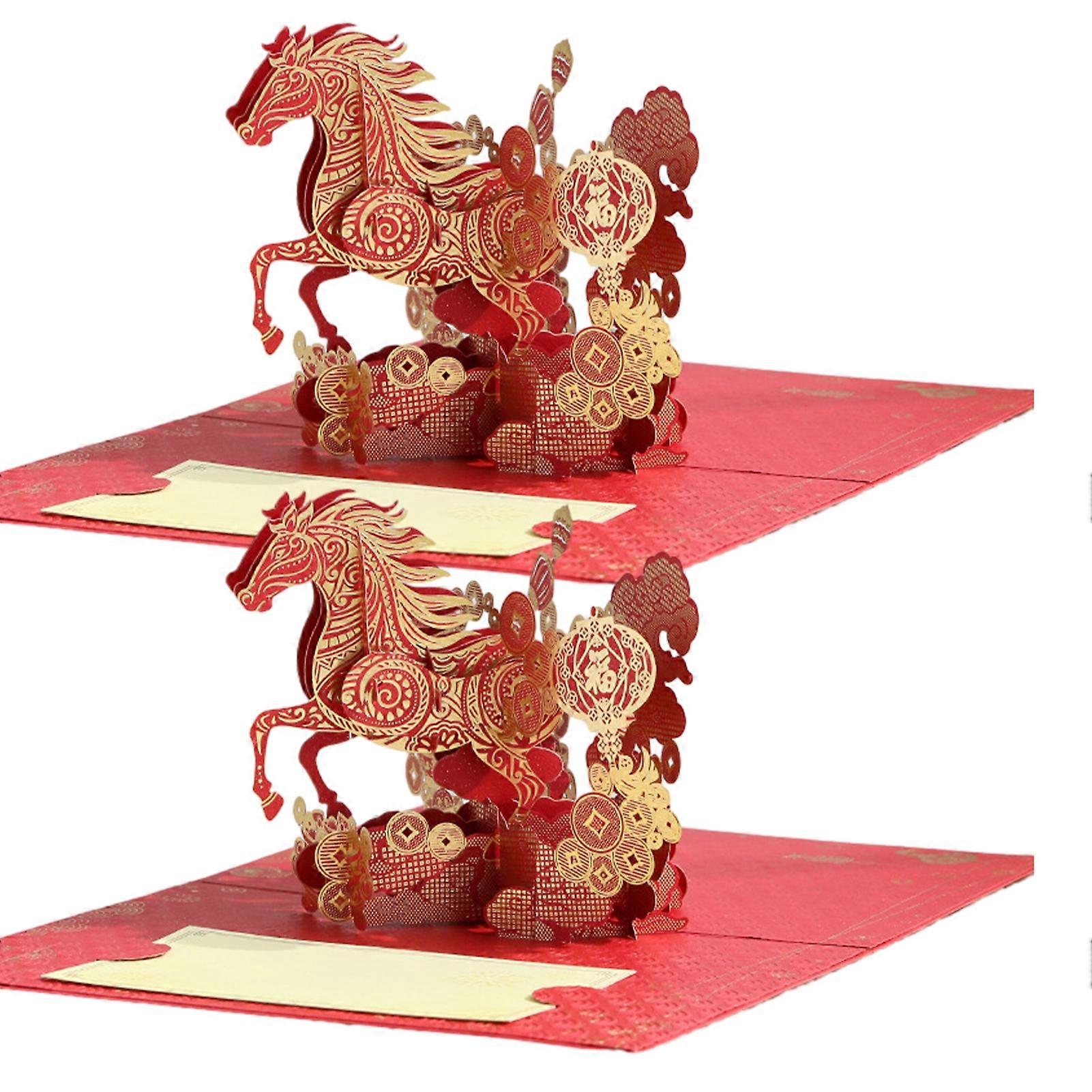 Premium Eco-Friendly Material: Crafted from high-quality recycled paper, this 2026 Lunar New Year greeting card combines sustainability with durability, offering a luxurious texture that ensures your festive message lasts as a treasured keepsake. Authentic Chinese Design: Featuring intricate gold foil detailing and traditional Chinese artistry, this card symbolizes good luck, prosperity, and happiness, perfectly capturing the spirit of the Year of the Horse. Unique 3D Pop-Up Feature: Surprise recipients with a stunning multi-layered pop-up horse that emerges effortlessly upon opening, creating an interactive and memorable experience without any assembly required. Complete Greeting Set: Includes a separate insert for personalized messages and a matching high-quality envelope, making it easy to hand-deliver or mail heartfelt New Year wishes with elegance and style. Versatile Celebration Accessory: Ideal for family, friends, or business associates, this stylish 3D pop-up card also doubles as a decorative piece, perfect for display throughout Lunar New Year festivities. Item Name: Greeting Card Material: Paper Features: 3D Pop Up, Stunning, Eye-catching, Celebration Size Details: Folding Size: 15cm x 20cm/5.91" x 7.87" (Approx.) Envelope: 16cm x 21cm/6.3" x 8.27" (Approx.) Card: 12.4cm x 7.6cm/4.88" x 2.99" (Approx.) Notes: Due to the light and screen setting difference, the item's color may be slightly different from the pictures. Please allow slight dimension difference due to different manual measurement. Package Includes: 1pc: 1 x Greeting Card or 2pcs: 2 x Greeting Cards