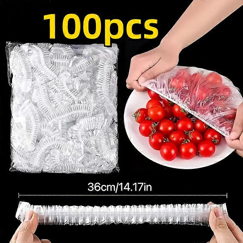 100pcs Reusable PE Elastic Food Covers - Stretchable Plastic Lids for Bread, Fruits, Snacks | Durable Transparent Seal