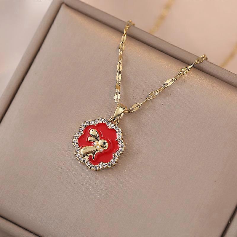 Stainless Steel Round Shell Zircon Cute Rabbit Pendant Necklace For Women New Luxury Girl Clavicle Chain Jewelry Accessories