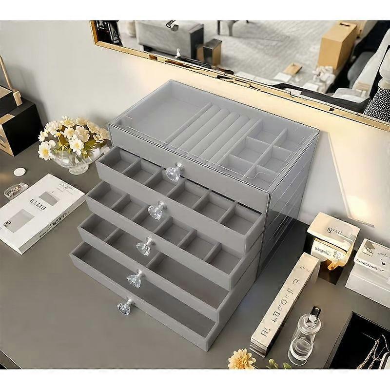 New 5 Layers Exquisite Gray Jewelry Box Earrings Ring Drawer Type Storage Box Large Capacity Anti-oxidation Jewelry Box