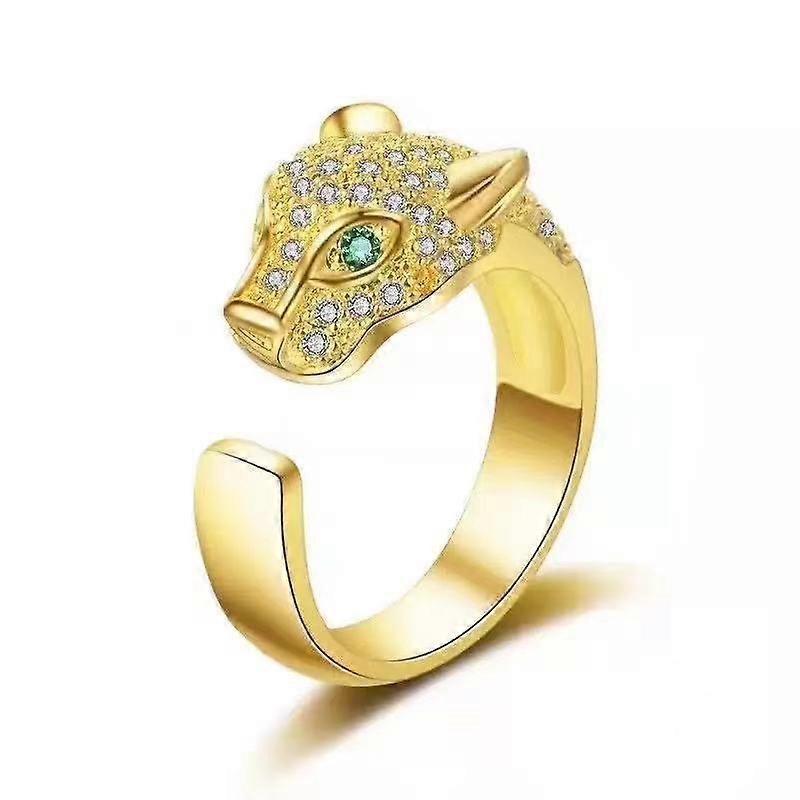 Leopard Panther Head Green Eye Opening Ring Micro-inlaid Crysyal Rhinestone Zircon for unisex Wedding Engagement Party Jewelry