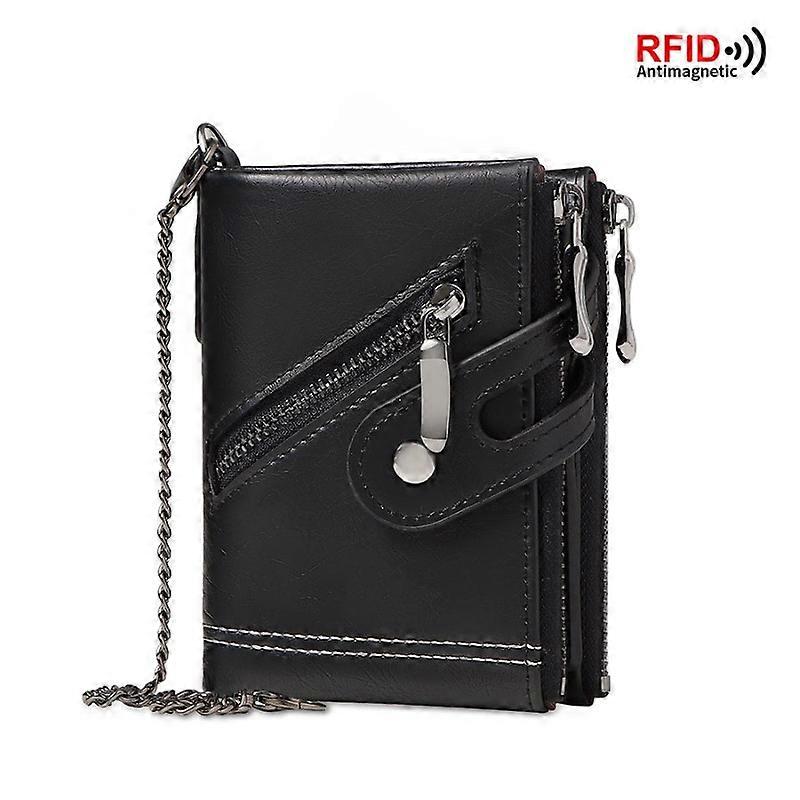 Men's Chain Wallet RFID Anti-Theft Men's Retro Leather Wallet Double Zipper Coin Purse Credit Card Holder for Men and Women