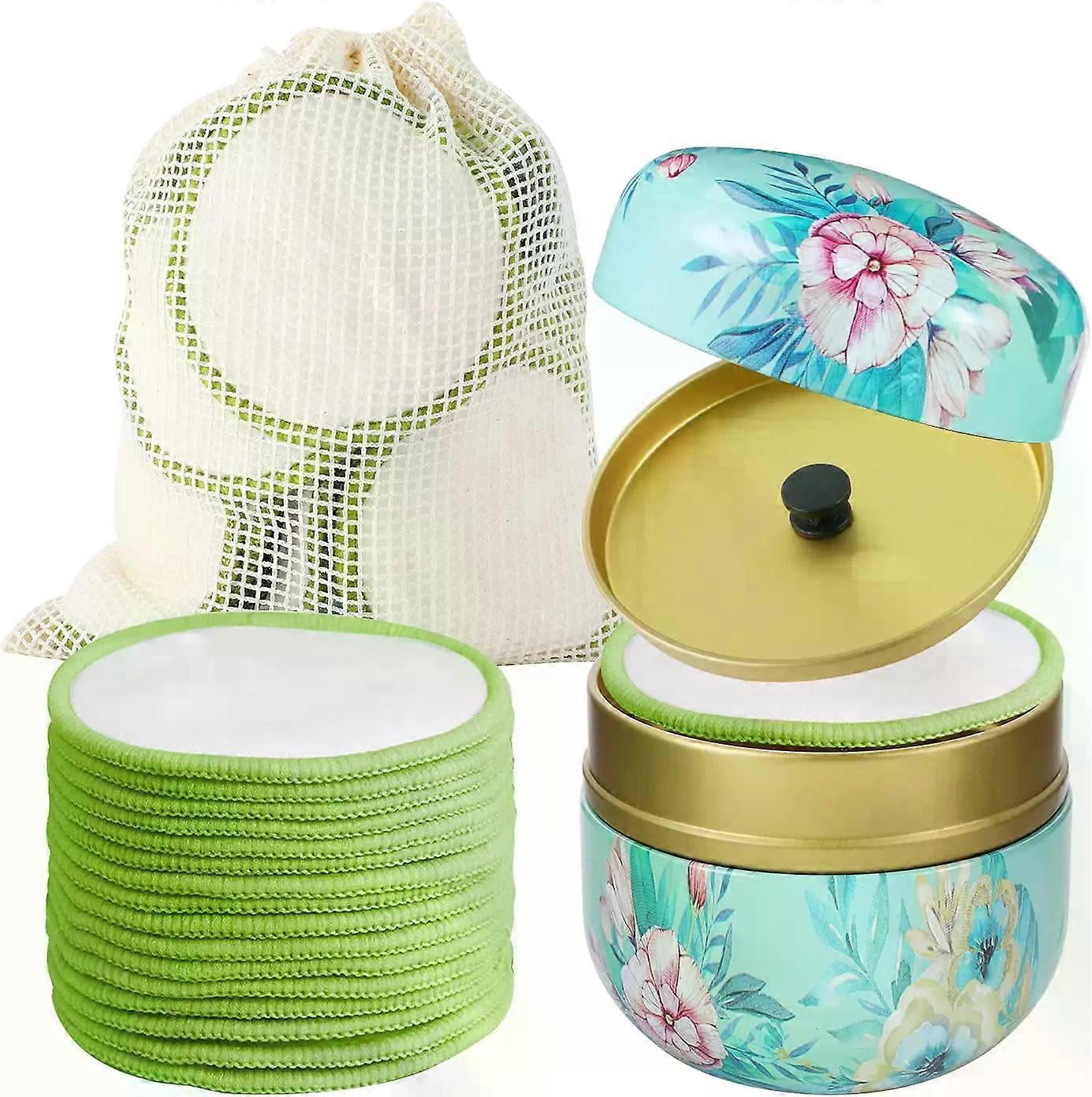 16Pcs/set Bamboo Makeup Remover Reusable Facial Pad Washable Face Round Cotton With Laundry Net Bag And Fashionable Metal Box