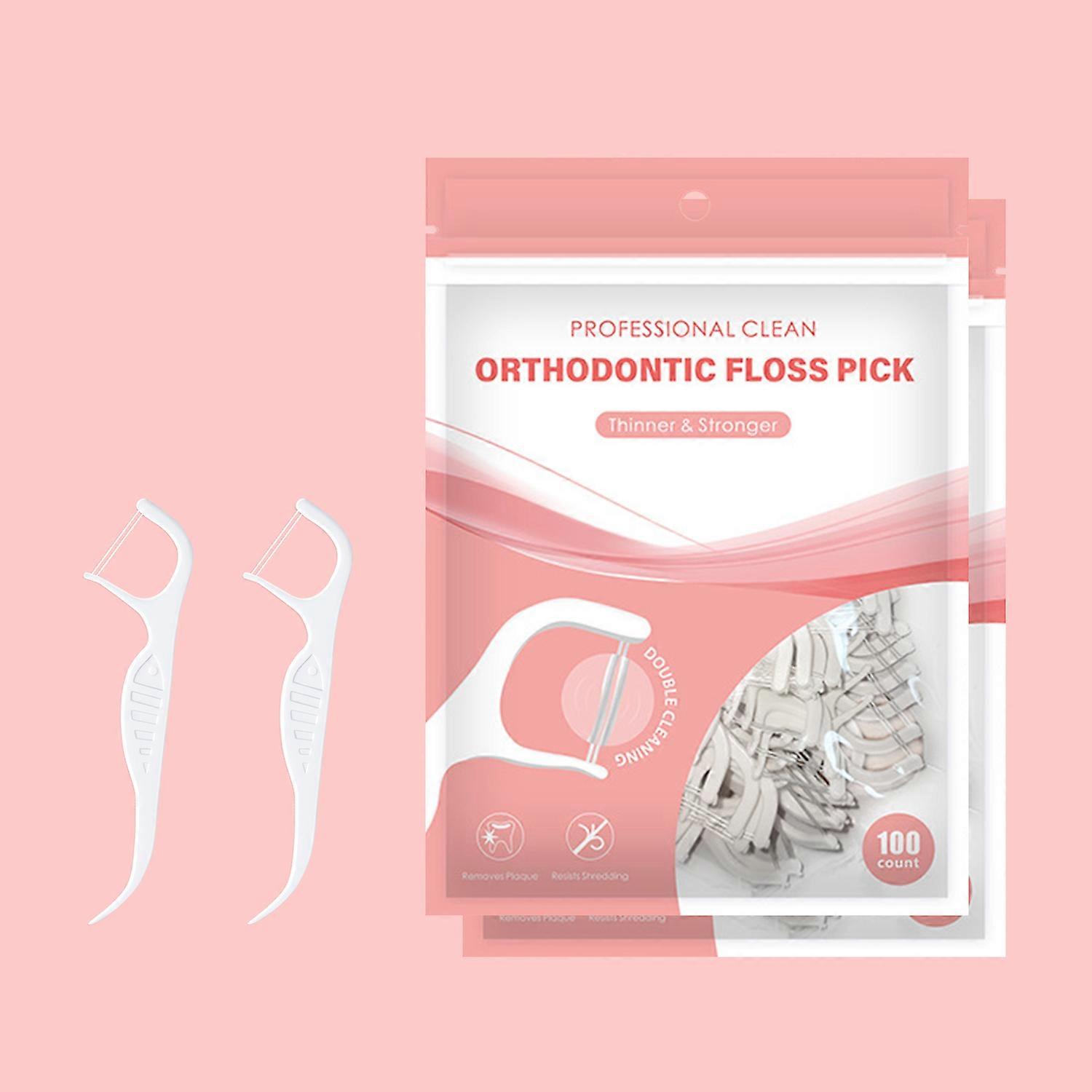 Orthodontic Flossers for Braces, Interdental Flosser Picks, Plastic Toothpicks With Threads Double Line, Family Size