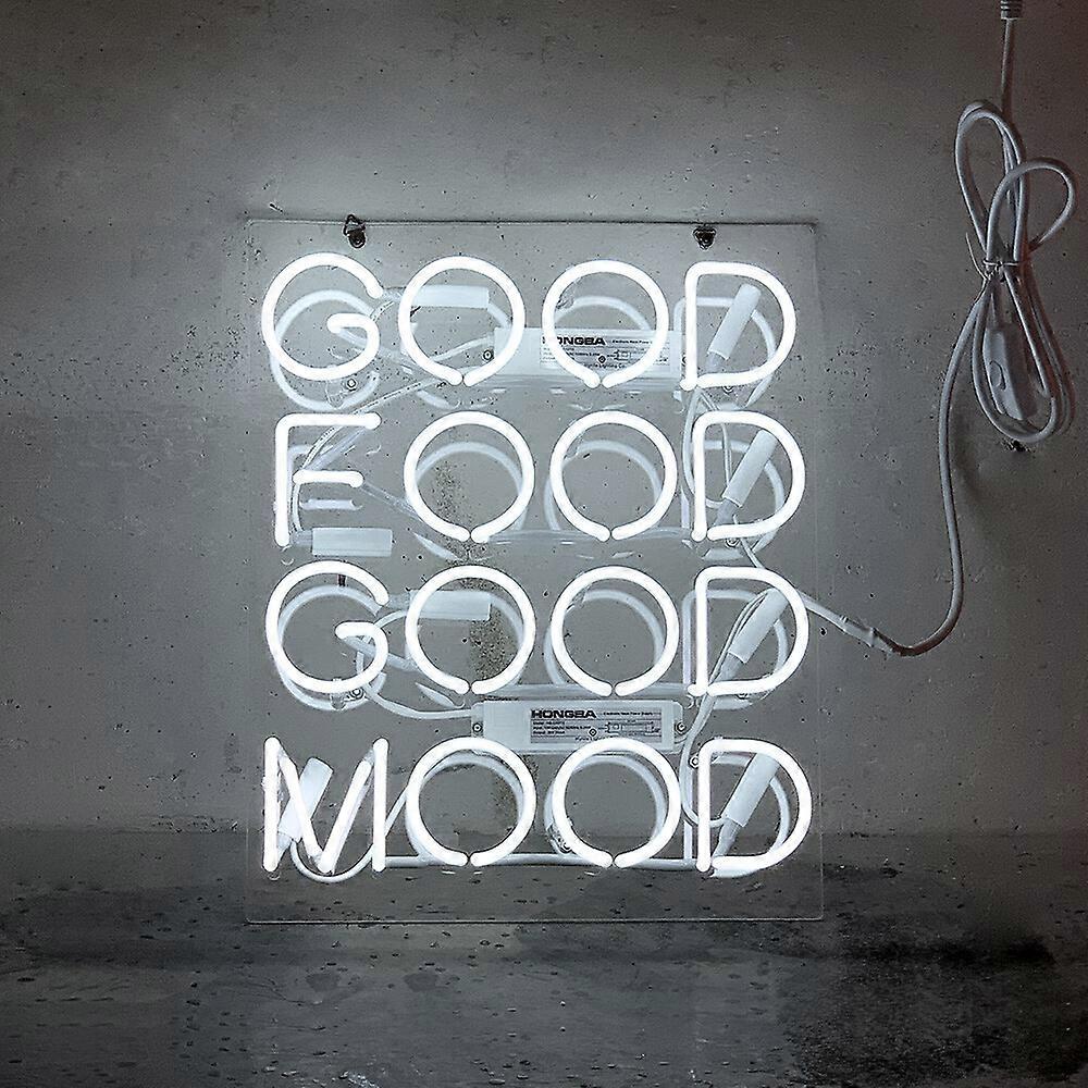 Good Food Good Mood Handmade Real Glass Neon Sign - 17"x14" Vibrant Restaurant & Kitchen Wall Art for Window Hanging Decor