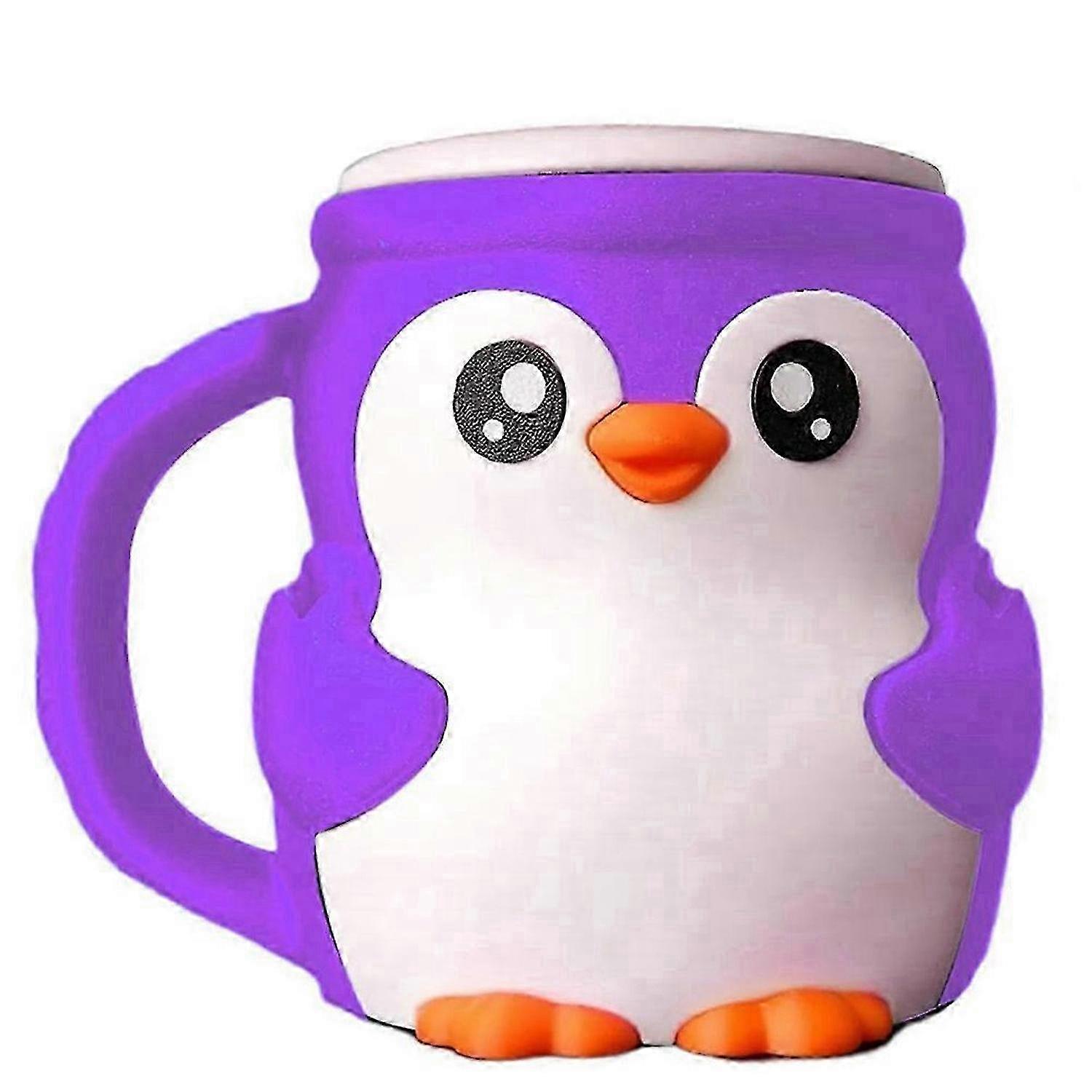 Cute Penguins Ice Cream Pint Holder with Spoon, Reusable Antifreeze Cup Holder for Kids, Adults, Parties & Summer Fun Purple