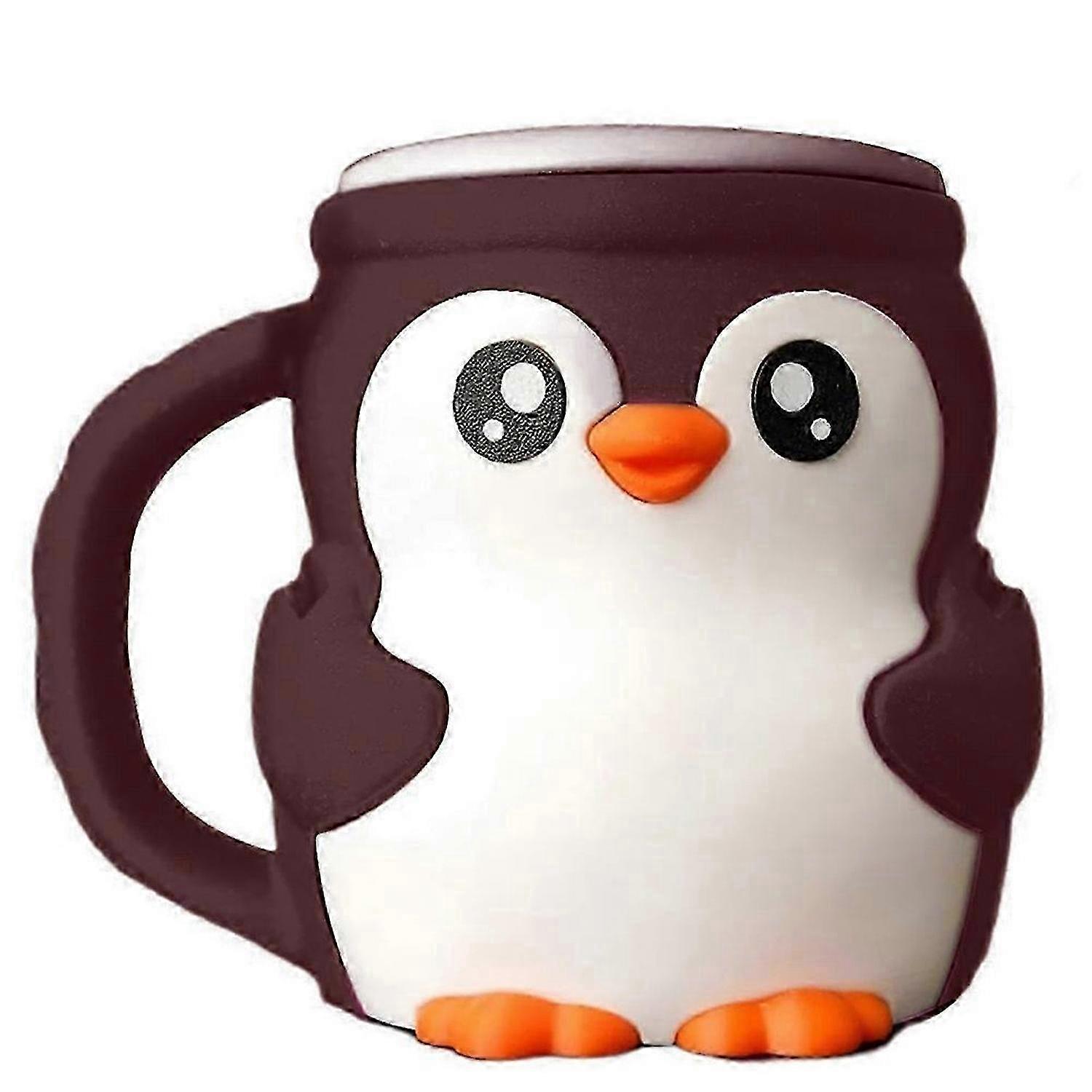 Cute Penguins Ice Cream Pint Holder with Spoon, Reusable Antifreeze Cup Holder for Kids, Adults, Parties & Summer Fun Brown