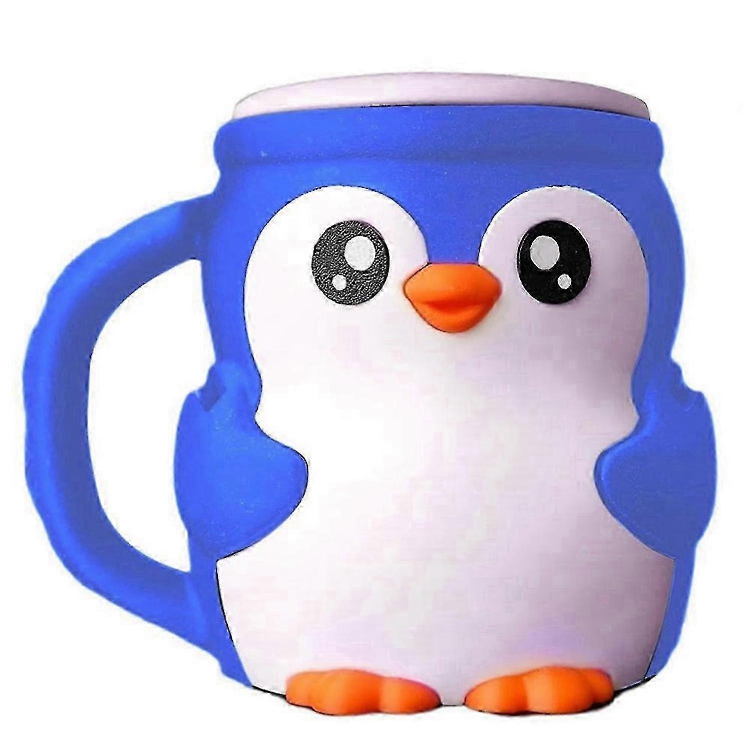 Cute Penguins Ice Cream Pint Holder with Spoon, Reusable Antifreeze Cup Holder for Kids, Adults, Parties & Summer Fun Blue