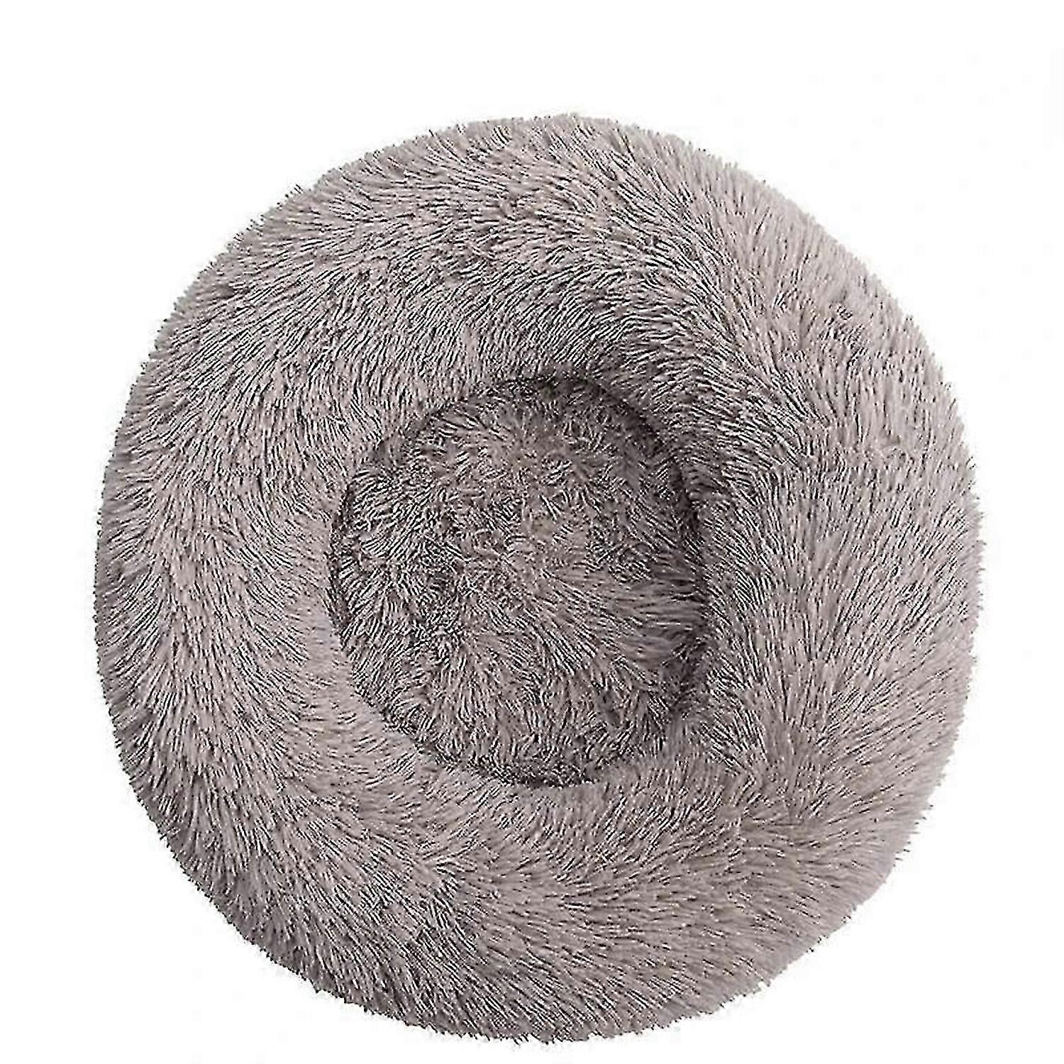 40-80cm Round Pet Bed for Large Dog Bed Super Soft Cat Bed Long Plush Dog House for Medium Dog House Winter Warm Sleeping Bed Diameter 80CM beige