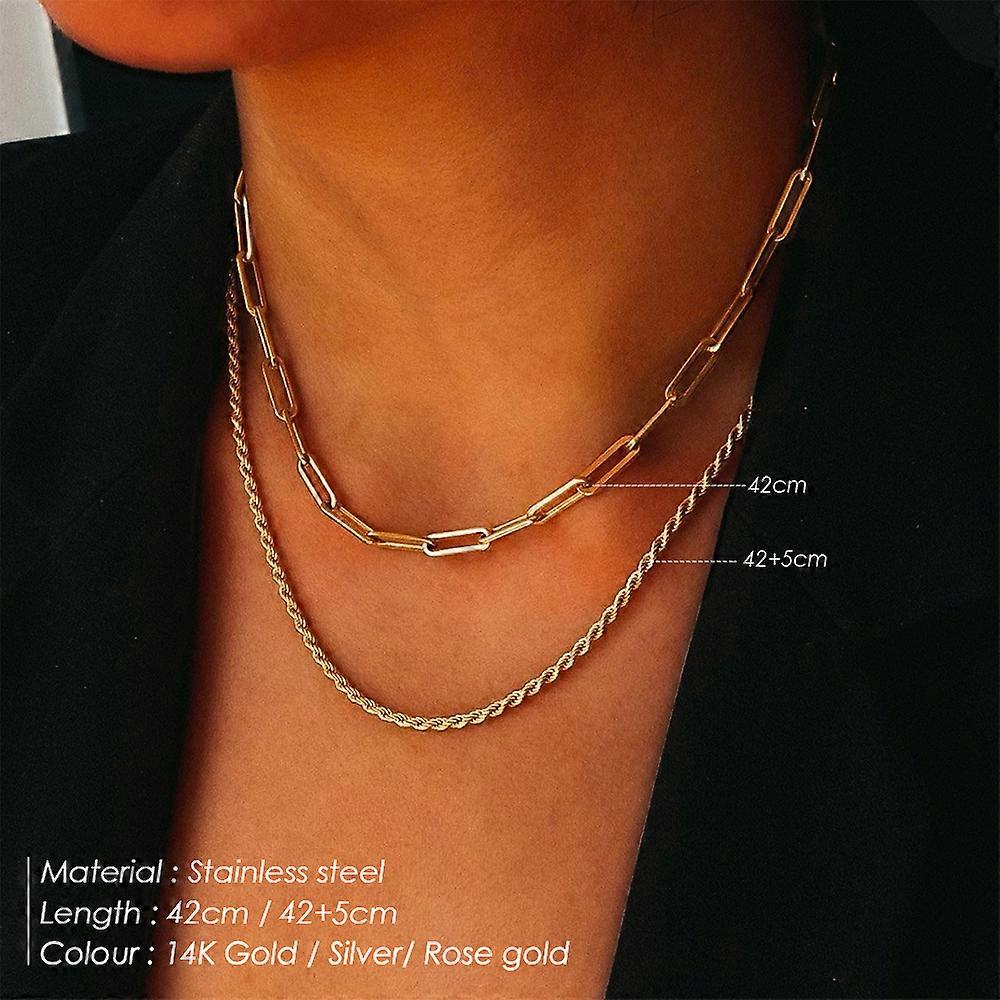 eManco Classic Women's Necklace Multi Stacked Fine Chain Stainless Steel Gold Plated Necklaces Fashion Jewelry Gifts